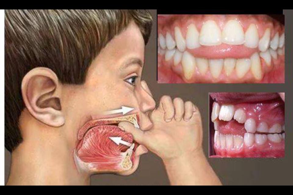oro-myofunctionele problemen zoals onder andere verkeerd slikken, duimen en open mondgedrag. De vorm van het gebit en de mond wordt voor een groot deel bepaald door de functie van de spieren in en om de mond. Afwijkende mondgewoonten kunnen het evenwicht tussen die spieren onderling verstoren en daarbij de stand van de tanden en kiezen bepalen.